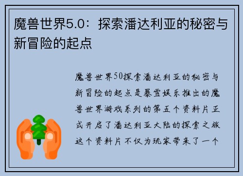 魔兽世界5.0:探索潘达利亚的秘密与新冒险的起点
